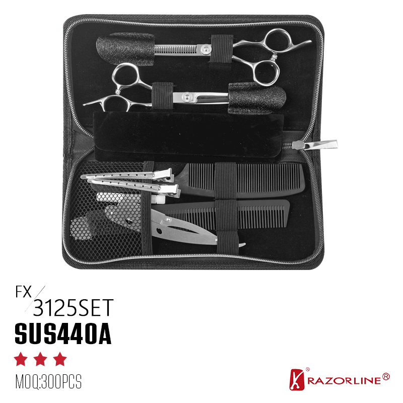 Moreover, as a direct manufacturer, we guarantee exceptional value on all our hairdressing scissors and barber kits. We also fully support bulk orders and OEM customization, therefore allowing schools or brands to personalize these tools. Ultimately, the FX3125SET delivers professional-grade reliability for both established barbers and aspiring students, making it a smart, versatile investment for anyone in the hair care industry.