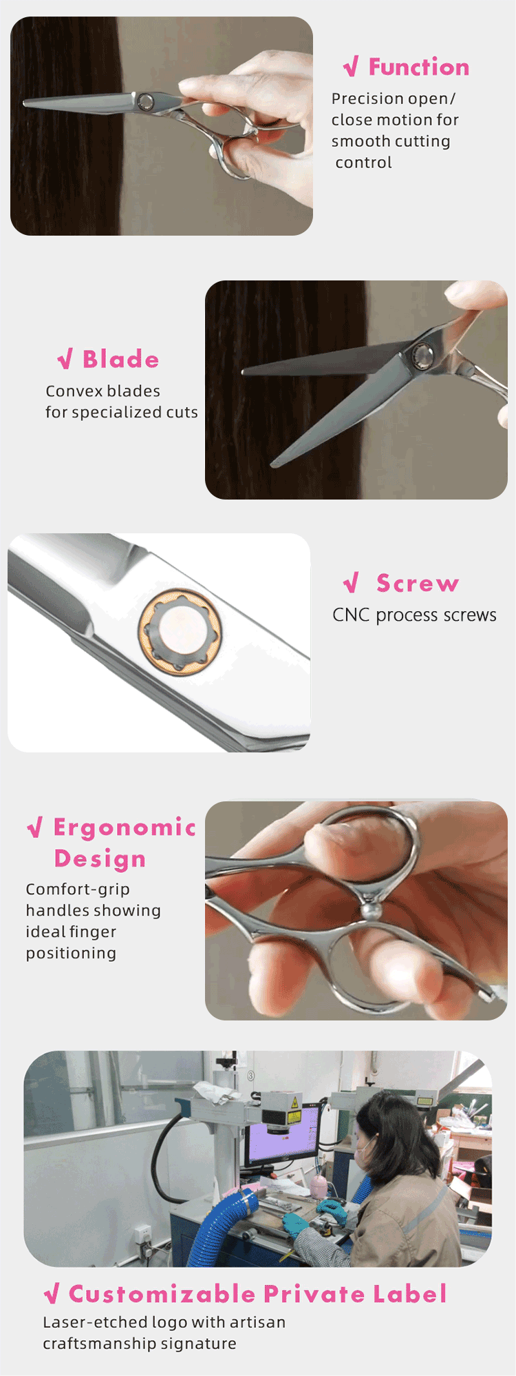 Featuring an advanced convex edge blade, these scissors glide effortlessly through hair with zero pulling or snagging, ensuring flawless results and preventing split ends. Additionally, the ergonomic offset handle design reduces hand strain dramatically, providing unparalleled comfort during extended cutting sessions.